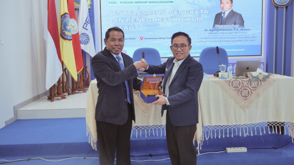 KRN-Surabaya, 8 Agustus 2025 — Fakultas Hukum Universitas Hang Tuah (UHT) menyelenggarakan Focus Group Discussion (FGD) bertajuk “Penyelesaian Sengketa dan Penegakan Hukum di Laut”, bertempat di Ballroom Pascasarjana UHT, Kamis (8/8).