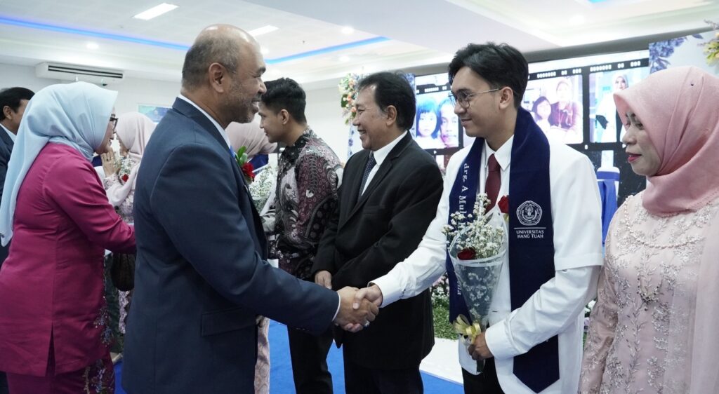 Sementara itu, Rektor Universitas Hang Tuah, Laksamana Muda (Purn) Dr. Ir. Avando Bastari, M.Phil., M.Tr.Opsla., IPM., ASEAN Eng., memberikan apresiasi kepada para dokter gigi baru.