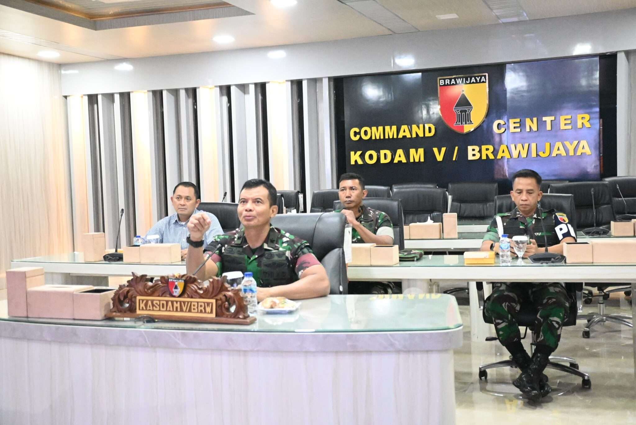 SURABAYA,  – Kasdam V/Brawijaya Brigjen TNI Zainul Bahar, S.H., M.Si mengikuti Rapat Lanjutan Evaluasi Percepatan Pembangunan Kawasan Desa Kreatif Mandiri Produktif (KDKMP) secara daring melalui Zoom Meeting yang digelar di Ruang Smart Integrated Command Center (SICC) Makodam V/Brawijaya, Selasa (23/12/2025).
