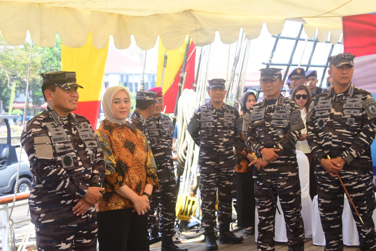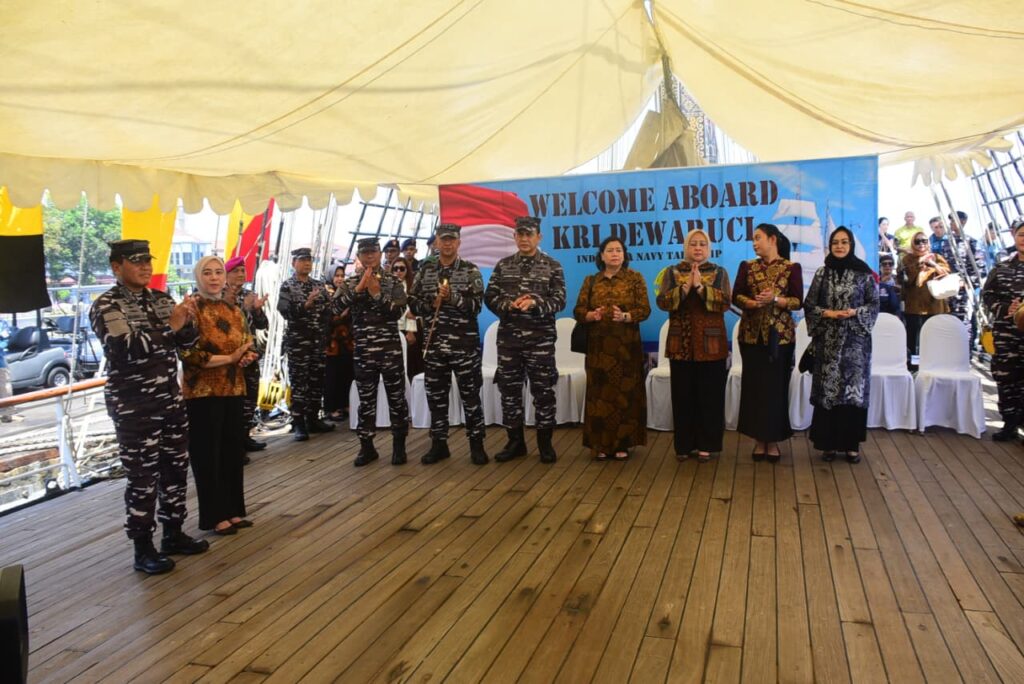 Gresikbersatu TNI AL. Koarmada II. 12 September 20205. Pangkoarmada II Laksda TNI I G. P. Alit Jaya, S.H., M.Si., bersama Ketua Gabungan II Gabungan Jalasenastri Koarmada RI Ny. Yully Alit Jaya, mendampingi Kepala Staf Angkatan Laut (Kasal) Laksamana TNI Dr. Muhammad Ali bersama Ketua Umum Jalasenastri Ny. Fera Muhammad Ali dalam kegiatan pengambilan gambar (take scene) perdana film The Hostage’s Hero. Acara ini berlangsung di KRI Dewaruci yang tengah sandar di Dermaga Madura Koarmada II, Jumat (12/9).