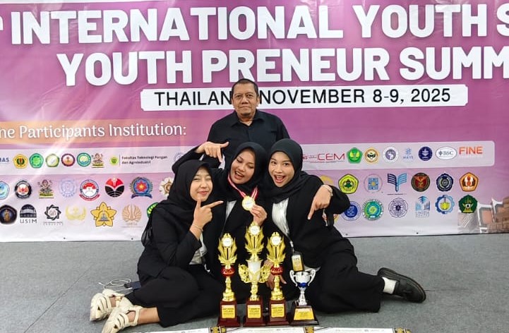 VIP- Bangkok, 8 November 2025 – Tiga mahasiswa Fakultas Kedokteran Universitas Hang Tuah (FK UHT) kembali menorehkan prestasi membanggakan di tingkat internasional. Tim yang terdiri atas Syahrilla Naswa Alamsyah Putri (20220410200), Luthfia Wahyu Ramadlani (20220410213) dan Azalia Shafaa Nareswari Irawan (20220410209) berhasil meraih sejumlah penghargaan pada ajang Youthpreneur Summit (YPS) 2025, yang berlangsung di Bangkok, Thailand, pada 8 November 2025.