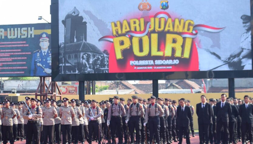 Upacara peringatan Hari Juang Polri 21 Agustus 2025 juga digelar di Mako Polresta Sidoarjo. Wakapolresta Sidoarjo AKBP Mohammad Zainur Rofik memimpin jalannya upacara diikuti pejabat utama, anggota Polri dan ASN.
