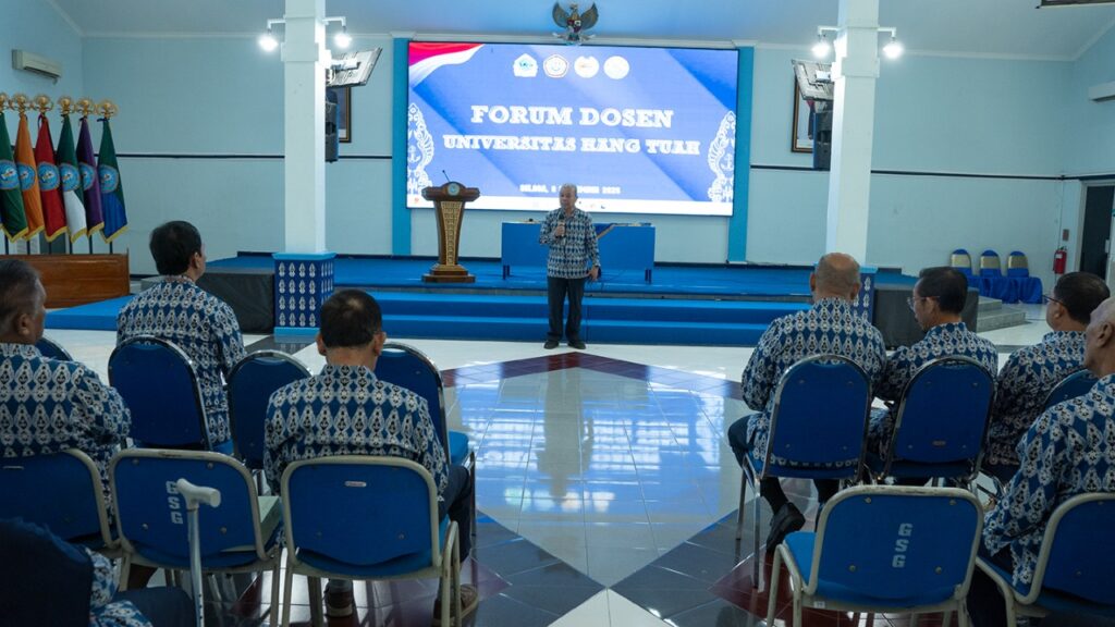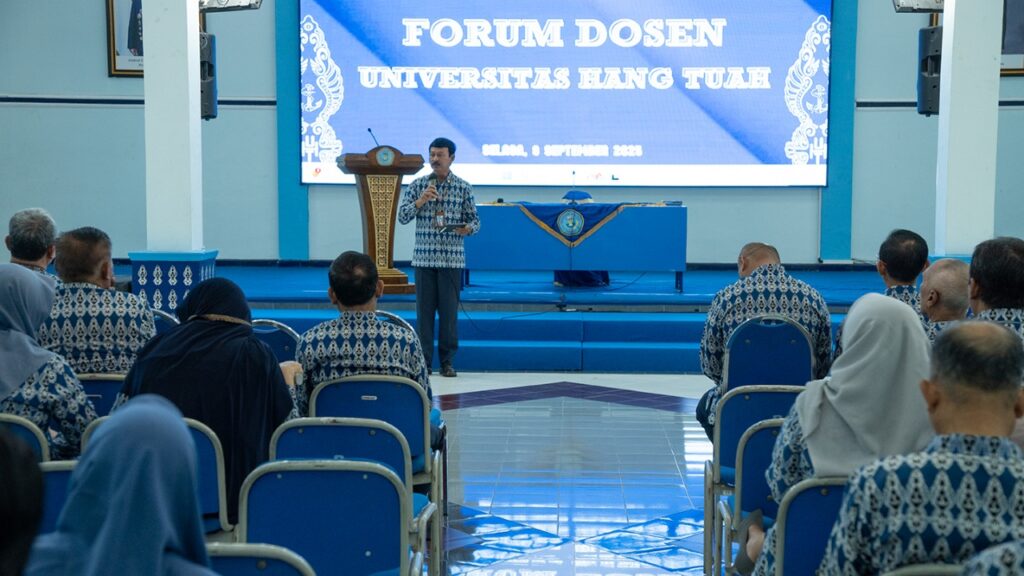 Surabaya, 9 September 2025 – Universitas Hang Tuah (UHT) menyelenggarakan Forum Dosen di Gedung Serbaguna UHT pada Selasa (9/9). Forum ini dipimpin langsung oleh Rektor UHT, Laksamana Muda (Purn) Dr. Ir. Avando Bastari, M.Phil., M.Tr.Opsla., IPM., ASEAN Eng., dan diikuti oleh seluruh dosen di lingkungan UHT.
